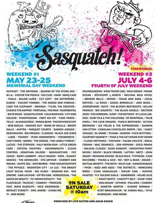 The first Sasquatch taking place on May 23-25, affectionately referred to as “Maysquatch,” features mind-blowing headliners in the form of Outkast, M.I.A., and Major Lazer. Not to be outdone, the 4th of July celebration brings us Neutral Milk Hotel, Soundgarden, and the incomparable Dillon Francis. But now here comes the tough decision: Do you drop the cash on one, the other, or both of the weekends?