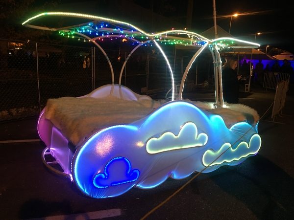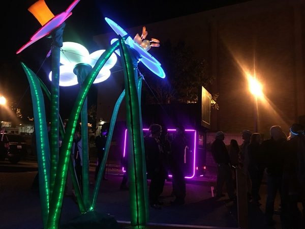 Taking place in downtown Burien from 4 PM to midnight, hundreds braved the cold temperatures to dance and participate in activities ranging from body painting to stepping inside a dust storm simulation tent (complete with moon dust collected from the Black Rock Desert itself!). The festival ground, which covered a few blocks, was sprinkled with bright art cars and installations – some of which spewed fire high up into the night sky at the push of a button. There weren’t many bicycles, the primary mode of transportation at Burning Man, but with an event radius so small, there was no real need for them it seemed. The neon jet skis driving around; those were cool though!
