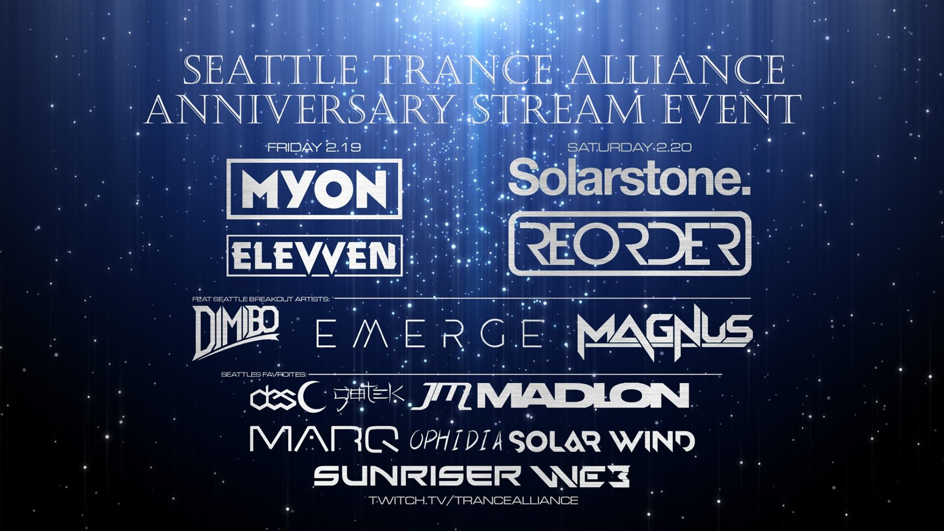 If you’re looking for some awesome trance music to get you through your weekend, look no further than Seattle Trance Alliance’s 5-year anniversary livestream. Happening Friday, February 19 and Saturday, February 20, the Anniversary Stream Event features major international trance artists and tons of local favorites.