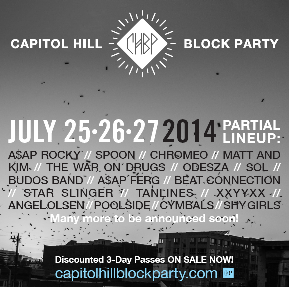 Every summer Seattleites look forward to numerous music festivals taking place throughout the downtown area. Lineups are announced, fans of artists flock to ticket booths, and everyone rallies behind their “favorite” festival. One of the most notable events, as almost any city-dweller will tell you, is Capitol Hill Block Party. Earlier today CHBP began releasing the 2014 lineup by announcing its official headliners including ODESZA, A$AP Rocky, Chromeo and more. Watch the official announcement below and prepare yourselves for one hell of a summer in Seattle!
