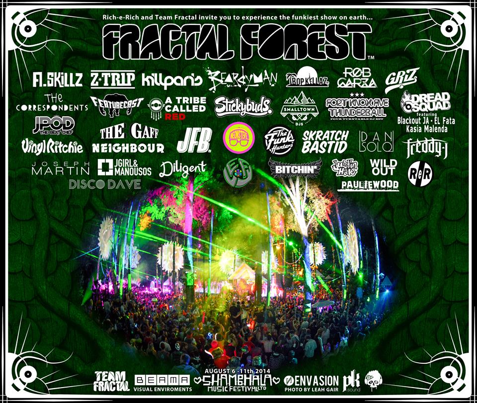 The Fractal Forest™ is a show within a show within a show. DJ’s play in the heart of the forest out of a burnt out old-growth cedar tree stump, surrounded by 360 degrees of the most beautiful dancers on the planet.”