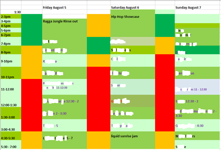 The teaser photo features over 30 time slots from Friday afternoon to Monday morning. Typically we’ll see the heavy hitters from the hours of 10pm-4am, you never know with Shambhala. Regardless of time slot you’re guaranteed to hear some of the best sets of the year come from The Village. Right away, we were able to scratch a few of these names off our list, and others still left us scratching our head. The Shambhala Facebook Group has been nonstop with suggestions, but until an official announcement these are strictly guesses.