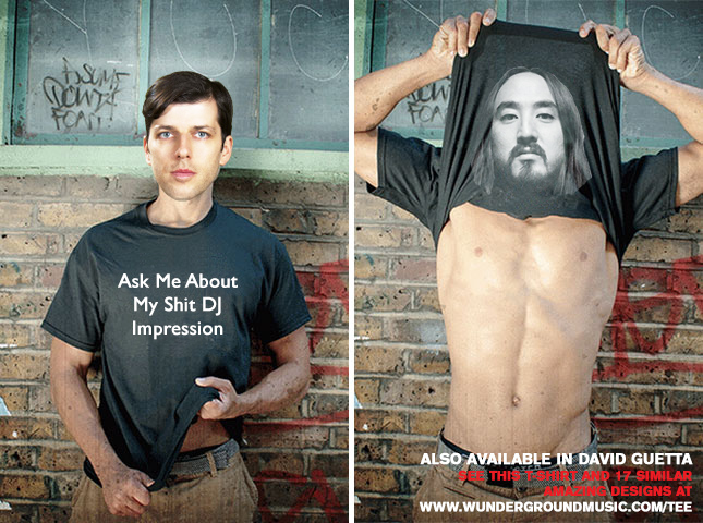 [dropcap size=small]W[/dropcap]ell, this is pretty hilarious. Popular satire site, Wunderground Music, has just received a cease-and-desist letter from Steve Aoki’s lawyers for selling this Steve Aoki shirt: