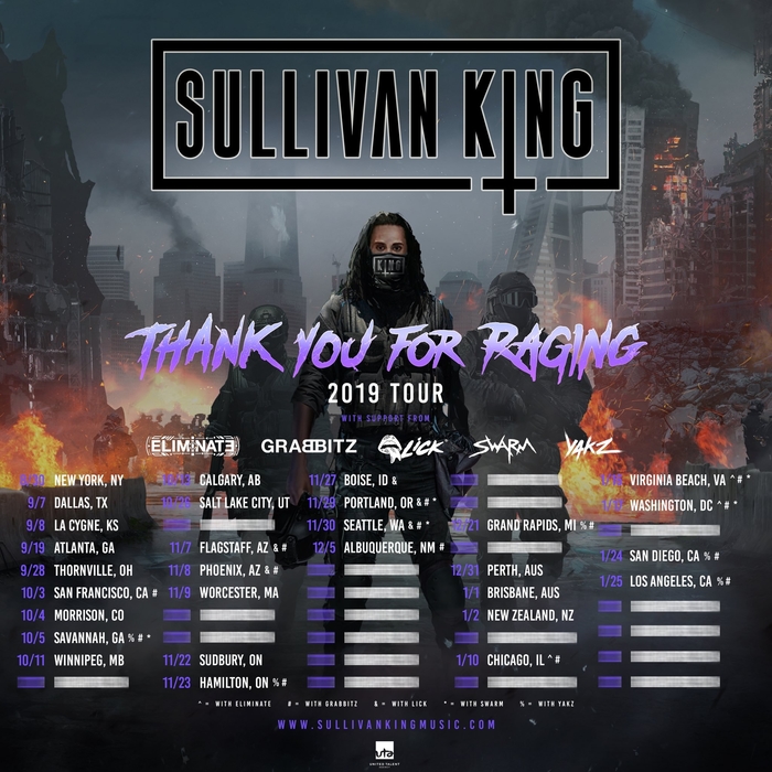 Sullivan King’s upcoming tour, Thank You For Raging, is about to destroy Portland and Seattle in late November, and he’s bringing three next-level openers along for the carnage. Tickets are available now for the Portland show on November 29th and the Seattle show November 30th.
