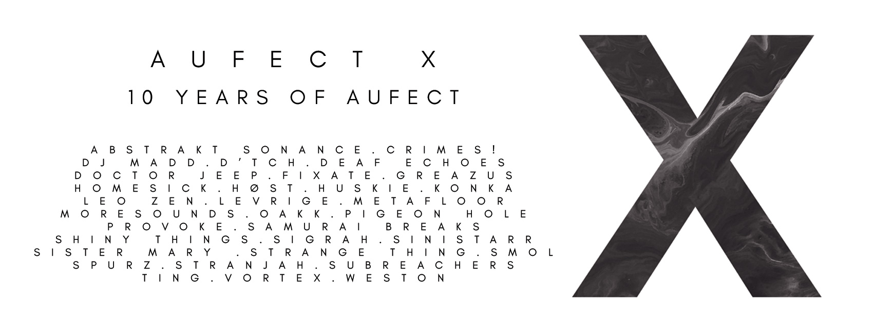 Over the years, the label continued to search for the best new bass music, constantly morphing and always building with friends. The Aufect back-catalog is a diverse mixture of Dubstep, Bass House, UK Garage, Club, Footwork, Jungle, Drum & Bass, Techno and just about everything you could imagine in-between.