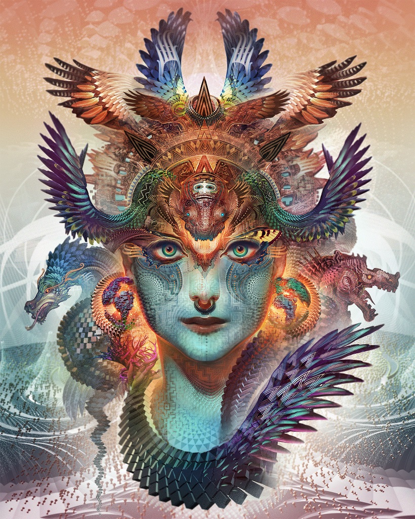 [divider]Android Jones[/divider]Android’s works are entirely digital, which he says provides “…a medium of energy and light capable of expanding the nature of reality.”