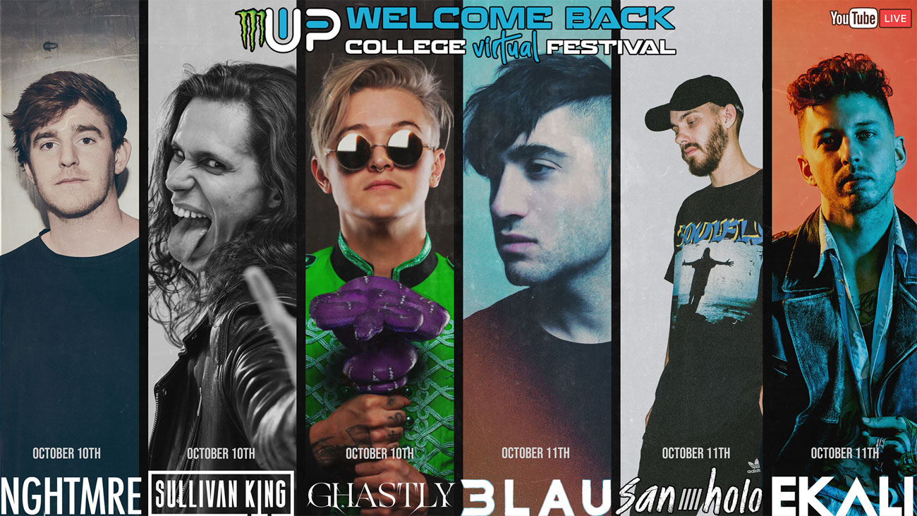 The Welcome Back Virtual Festival will be streamed live on Monster Energy’s YouTube from October 9 to October 11, 2020. The stream will be free, and not only will there be some of your favorite dance music artists, but there will also be celebrity appearances and showcases of student-produced content — after all, Up & Up is here to help students show their talent and shine bright in the music industry.