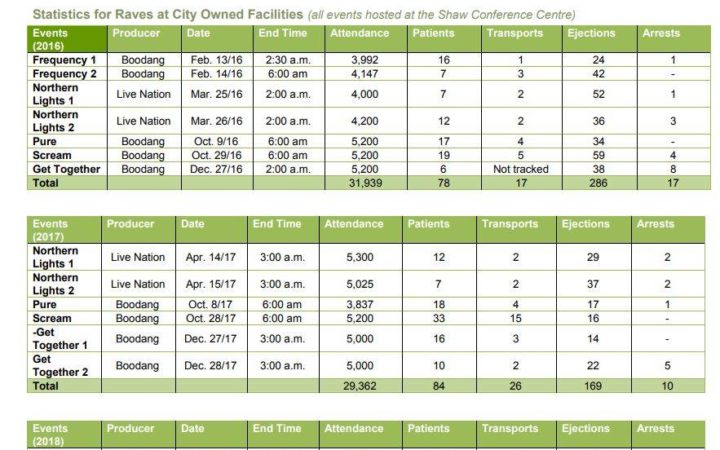 In 2017, four EDM events that took place at the Shaw Conference Centre saw 29,362 in attendance. 84 were medical patients, 17 were transported to hospital, 286 were ejected and 17 were arrested. Those numbers come together to reveal that out of every attendee only 1.4% of them were problematic. When it comes to the most recent event in 2018, only 0.8% needed medical help, were ejected or arrested.