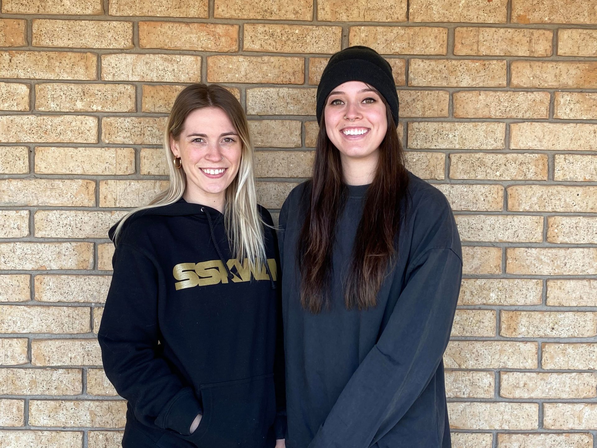 Chloe Suit (L) and Emily Mitchell (R) take a photo together